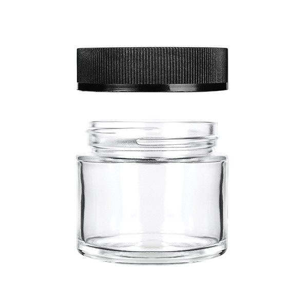 2oz Child Resistant Clear Black Glass Jars Airtight 3.5g
